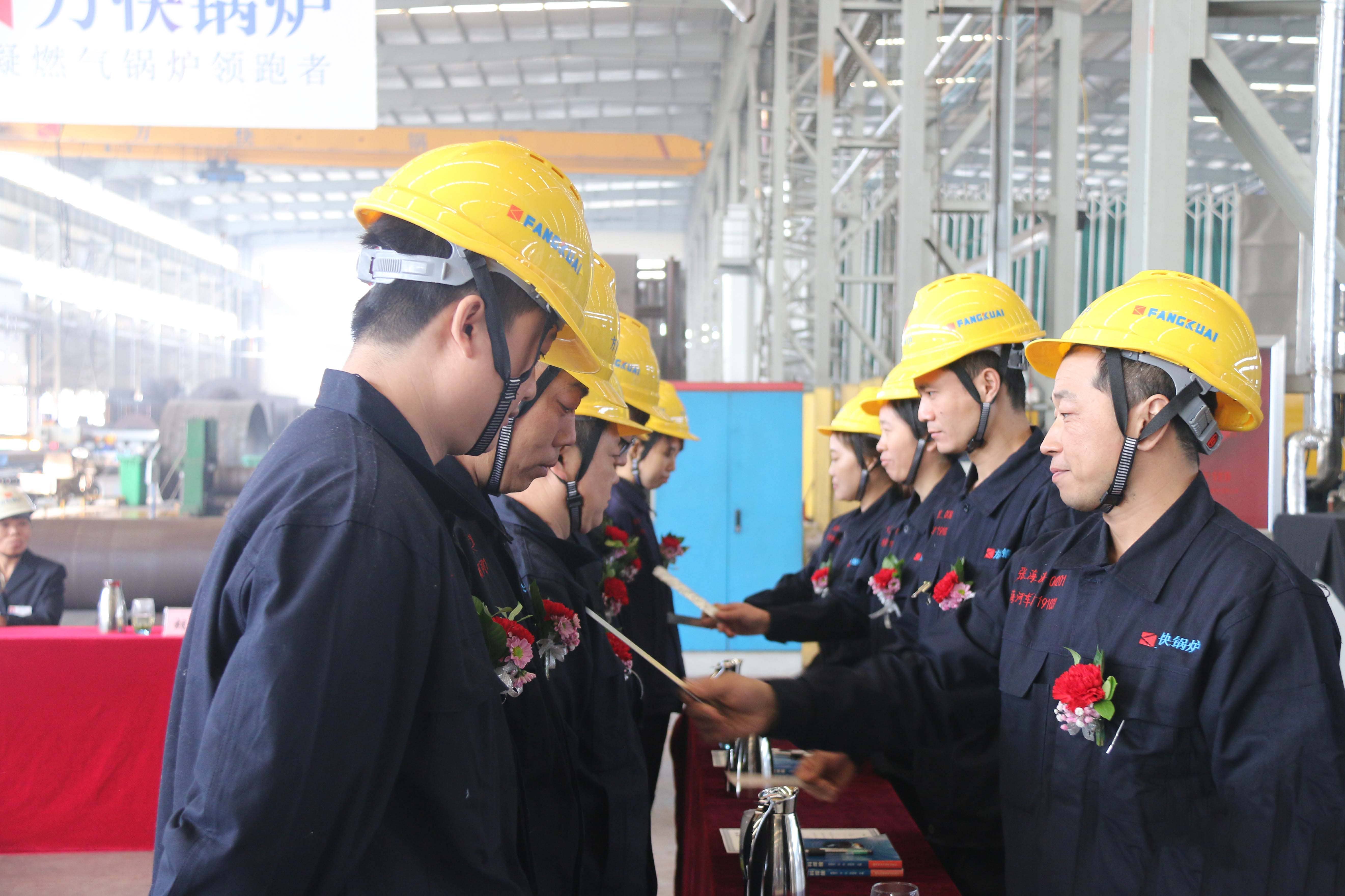 11月5日上午,在我市總工會勞經(jīng)部長康小兵,我區(qū)總工會主席宋軍等政府領(lǐng)導(dǎo)和我司質(zhì)量經(jīng)理姜連菊、生產(chǎn)經(jīng)理胡翔等企業(yè)高層的見證下,2019年方快鍋爐“青藍(lán)工程”拜師儀式正式啟動。
