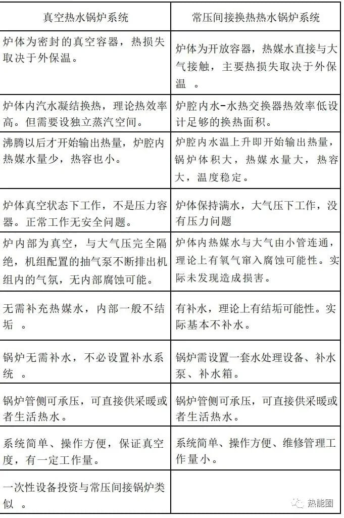 由于真空鍋爐具有不需要接受特種設備檢驗等優勢,最近幾年發展較快,但是真空鍋爐生產廠家,有意夸大機組的優點,對于其不足之處,沒有人仔細分析過。在網上查詢,經過分析對比后,列出主要的優缺點供大家參考。